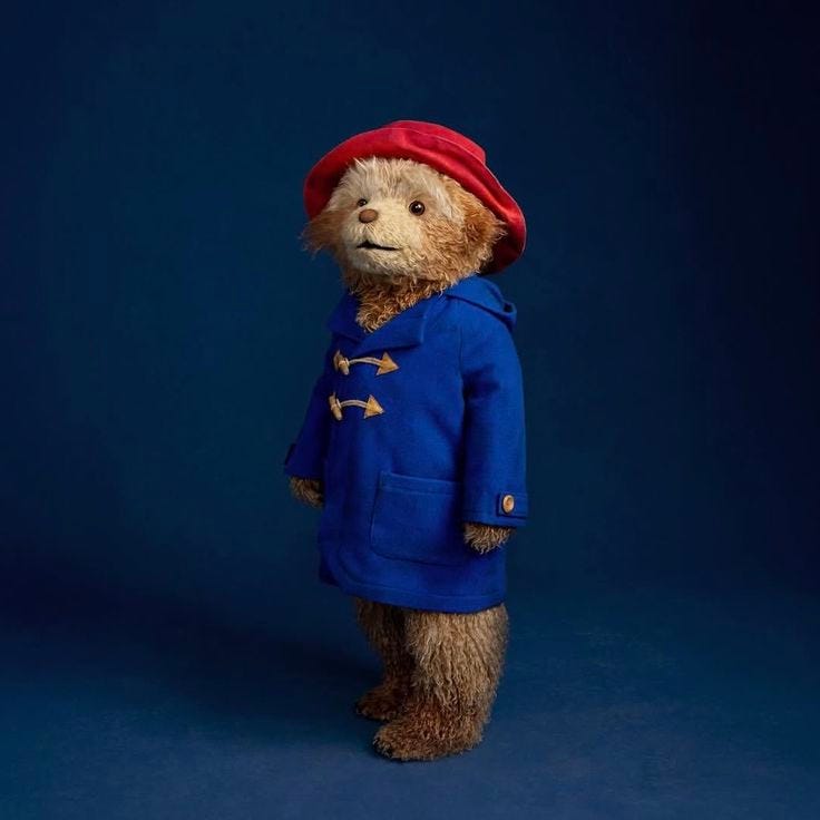 But this morning, I woke up and put on this blue jacket, and the Lord was gracious enough to send a cool breeze to drop the temperature, so I put on this red hat. I looked in the mirror and thought to myself, “Girl, you look like… Paddington The Bear.” Throughout the day I tickled myself with the association.